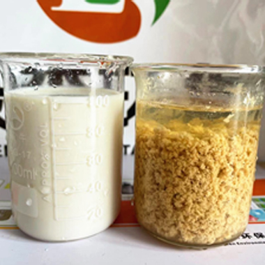 綠森環(huán)保技術(shù)團(tuán)隊(duì)?wèi)?yīng)某化妝品客戶(hù)要求上門(mén)技術(shù)服務(wù),現(xiàn)場(chǎng)給客戶(hù)廢水破乳劑中試。客戶(hù)廢水:沐浴露廢水,特點(diǎn):含有乳化劑、增稠劑、抗氧化劑、防腐殺菌劑和香精色素等,廢水顏色:淺黃色。使用破乳劑破乳后廢水上清液清澈透明,如下圖       &nbs···